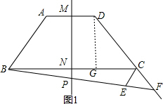 分析 (1)过点A作AO⊥BC于点O,过点D作DG⊥BC于点G,根据第一数据线的性质得到CG=$\frac{1}{2}$(BC-AD)=$\frac{1}{2}$(10-4)=3,在直角三角形中,利用勾股定理求出DG=4,所以梯形的高为4.