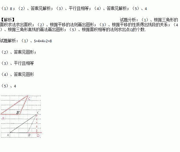 (5)能使S△ABC=S△QBC的格点Q,共有 个.