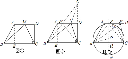 分析 (1)如图①,过A作AE⊥BC,可得出四边形AECD为矩形,得到EC=AD,BE=BC-EC,在直角三角形ABE中,求出AE的长,即为三角形BMC的高,求出三角形BMC面积即可;