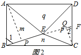 若m=n,则p=q,作AP⊥BE于P,作CQ⊥BE于Q,延长BE交CD于F,如图2所示:![]()