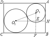 如图,矩形ABCD中AD=9,CD=8,⊙O1与⊙O2是矩形内的二圆,且⊙O1与AB、AD相切,⊙O2与CD、CB相切,二圆又外切,则二圆面积之和的最大值是________,最小值是________.