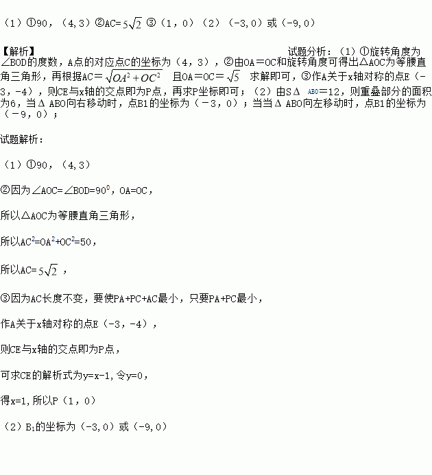 (1)将ΔAOB绕点O顺时针旋转得到ΔCOD,其中C与A对应,D与B对应,并且点D落在y轴上。
