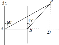 分析 过点P作PD⊥AB于D,在Rt△PBD和Rt△PAD中,根据三角函数AD,BD就可以PD表示出来,根据AB=12海里,就得到一个关于PD的方程,求得PD.从而可以判断如果渔船不改变航线继续向东航行,没有触礁危险.