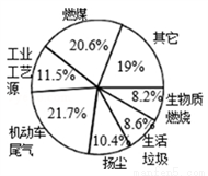 根据环保局公布的广州市2013年至2014年PM2.5的主要来源的数据,制成扇形统计图,其中所占百分比最大的主要来源是_________.(填主要来源的名称)