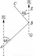 如图,在A、B两处之间要修一条笔直的公路,从A地测得公路走向是北偏东46°,A、B两地同时开工,若干天后公路准确接通.