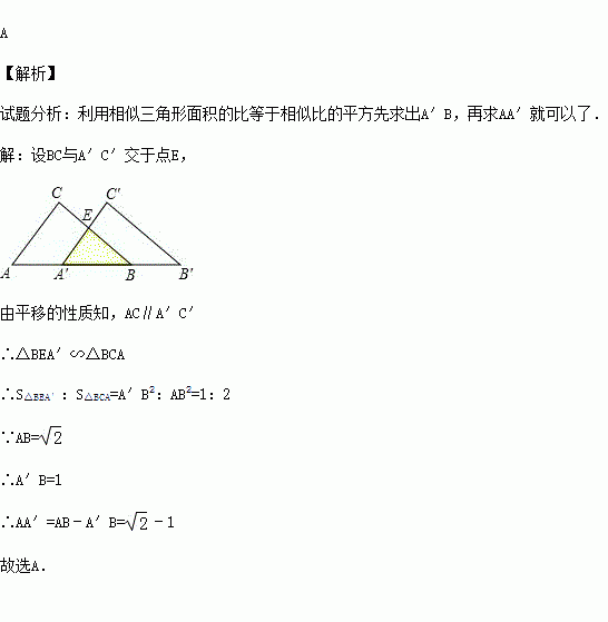 (2015•呼伦贝尔)如图:把△ABC沿AB边平移到△A′B′C′的位置,它们的重叠部分(即图中阴影部分)的面积是△ABC面积的一半,若AB=