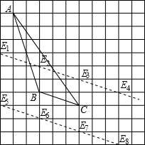(5)满足条件的E点有8个,如图,平行于BC的直线上,与网格的所有交点即为所求.![]()