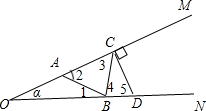 如图,在∠MON的两边依次截取OA=AB=BC=CD=2.