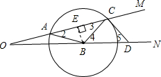 (2)要证CD是⊙B的切线,就要证∠BCD=90°,利用特殊角的三角函数值求出∠2=30°,再求出∠4和∠5都等于45°,从而证得∠BCD=90°.