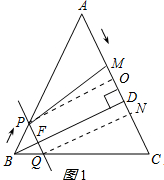 ②若PQ=QM,作QN⊥AC于N,如图1所示:
