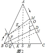 作PG⊥BC于G,AS⊥BC于S,MH⊥BC于H,则EK∥PG∥AS∥MH,如图2所示:![]()
