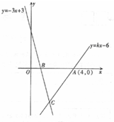如图,直线y=kx-6经过点A(4,0),直线y=-3x+3与x轴交于点B,且两直线交于点C.