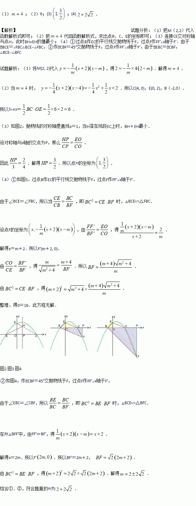 (4)在第四象限内,抛物线C1上是否存在点F,使得以点B、C、F为顶点的三角形与△BCE相似?若存在,求m的值;若不存在,请说明理由.