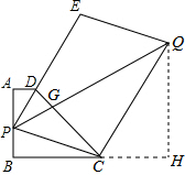 分析 设PQ与DC相交于点G,作QH⊥BC,交BC的延长线于H,由PE∥CQ,DE=2PD,可得$\frac{DG}{GC}=\frac{PD}{CQ}=\frac{1}{3}$,易证得Rt△ADP∽Rt△HCQ,继而求得BH的长,即可求得答案.