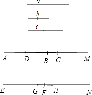 分析 先平分线段b和c,再作射线AM,再截取AB=a,BC=$\frac{1}{2}$b,CD=c,则AD为所求;然后作射线EN,再截取EF=a,FH=$\frac{1}{2}$b,GH=$\frac{1}{2}$c,则EG为所求.