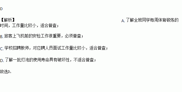D. 了解一批灯泡的使用寿命