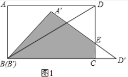 ·ÖÎö £¨1£©¸ù¾ÝÐýתµÄÐÔÖÊ¿ÉÖªB¡äD¡ä=BD=10£¬CD¡ä=B¡äD¡ä-BC=2£¬ÓÉtan¡ÏB¡äD¡äA¡ä=$\frac{A¡äB¡ä}{A¡äD¡ä}=\frac{CE}{CD¡ä}$£¬¿ÉÇó³öCE£¬¼´¿É¼ÆËã¡÷CED¡äµÄÃæ»ý£¬S A¡äB¡äCE=S A¡äB¡äD¡ä-S CED¡ä£»