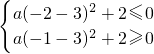 (2)顶点C是矩形DEFG上(包括边界和内部)的一个动点,当顶点C与D点重合,可以知道顶点坐标为(1,3)且抛物线过(-1,0),则它与x轴的另一个交点为(3,0),由此可求出a;当顶点C与F点重合,顶点坐标为(3,2)且抛物线过(-2,0),则它与x轴的另一个交点为(8,0),由此也可求a,然后由此可判断a的取值范围.