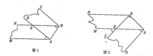 如图1,将一条两边沿互相平行的纸带折叠(AM//BN,AD//BC),AB为折痕,AD交BN于点E.