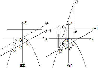 (3)如图2,取MN的中点E,取AB的中点C,分别过点M、N作直线y=1的垂线,垂足分别为A、B,连EC、MC并延长MC交NB的延长线于点H