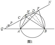 ¢Ú¡ÏAPBµÄ¶ÈÊýÏÈÓÉС±ä´ó£¬È»ºóÓÉ´ó±äС£»¡ÏAPBµÄ¶ÈÊýÄÜÈ¡µ½×î´óÖµ£¬µ±µãPÊǹýA£¬BÁ½µãµÄÔ²ÓëQNÏàÇеÄÇеãʱ¼´¿ÉÈ¡µÃ£»