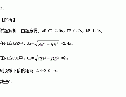 如图,一根长为2.5米的梯子斜靠在垂直于地面的墙上,这时梯子的底端B离开墙根为0.7米,如果梯子的底端向外(远离墙根方向)移动0.8米至D处,则梯子的顶端将沿墙向下移动( )