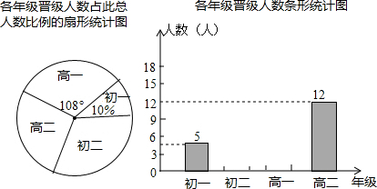 为迎接重庆南开中学建校78周年,学校举办了校史知识大赛.现统计调查了初一、初二、高一和高二年级在校史知识大赛晋级决赛的人数,并绘制成了如图所示的条形统计图和扇形统计图,请你根据图中提供的信息完成下列各题: