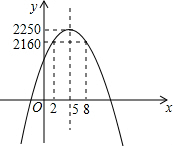 即当x=5时,y有最大值2250,