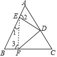 分析 连接EF,由△△ABC为等边三角形可得∠A=∠B=60°,继而得∠1+∠3=120°,根据旋转的性质得DE=DF、∠EDF=60°,即△DEF为等边三角形,从而知∠1+∠2=120°,故可得∠2=∠3,再证△ADE≌△BEF可得BF=AE=2.