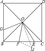 分析 如图,作辅助线;首先运用正方形的性质证明OB=OC,∠OBG=∠OCE=45°;证明∠BOG=∠COE,运用ASA公理即可证明△COE≌△BOG,得到结论①正确;证明△MOE≌△COE,得到∠OME=∠OCE=45°,进而得到∠EMF=90°,运用勾股定理即可证明结论④正确,在△MEF中,ME+MF>EF,CE+BF>EF,故③正确.
