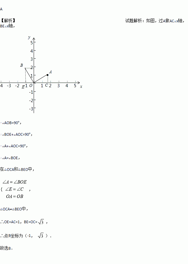 ,1),将OA绕原点按逆时针方向旋转90°得OB,则点B的坐标为( )