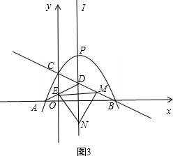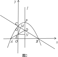 (2)如图1,由y=$-\frac{1}{3}{x}^{2}+\frac{2\sqrt{3}}{3}x+3$得对称轴I方程为x=$\sqrt{3}$,![]()