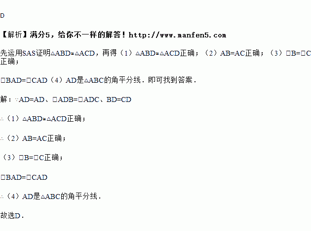 (1)△ABD≌△ACD;(2)AB=AC;