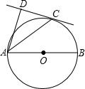 如图,AB为⊙O的直径,C为⊙O上的一点,DA和过点C的切线互相垂直,垂足为D,若∠DAB=70°,求∠DAC的度数.