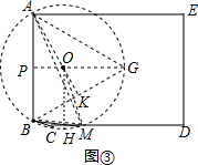 点评:本题考查了垂直平分线的性质、矩形的性质、等边三角形的性质、正方形的判定与性质、直线与圆的位置关系、圆周角定理、三角形的中位线定理、全等三角形的判定与性质、勾股定理、特殊角的三角函数值等知识,考查了操作、探究等能力,综合性非常强.而构造等边三角形及其外接圆是解决本题的关键.