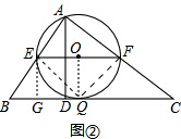 以EF为直径作⊙O,过点O作OQ⊥BC,垂足为Q,连接EQ、FQ,如图②.