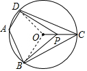分析 连接OB、OD,根据圆内接四边形的性质求出∠DCB的度数,根据圆周角定理求出∠DOB的度数,得到∠DCB<∠BPD<∠DOB,进而可得答案.