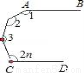 如图,AB∥CD,则∠1+∠2+∠3+ …+∠2n=______________度.(用含n的式子表示)