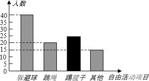 某学校为丰富课间自由活动的内容,随机选取本校100名学生进行调查,调查内容是“你最喜欢的自由活动项目是什么”,整理收集到的数据,绘制成直方图,如图所示.