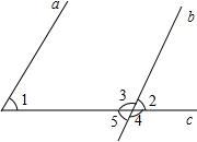 分析:根据平行线的判定定理推知a∥b,则利用平行线的性质和对顶角相等以及等量代换进行解答.