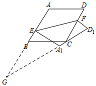 分析 先延长AB,D1A1交于点G,根据三角形三角形外角性质以及等腰三角形的判定,即可得到BC=BG=BA,设BE=1,AE=x=A1E,则AB=1+x=BC=BG,A1G=2x,在Rt△A1GE中,依据勾股定理可得A1E2+GE2=A1G2,进而得出方程x2+(x+2)2=(2x)2,据此可得AE=1+$\sqrt{3}$,即可得出$\frac{BE}{AE}$的值.