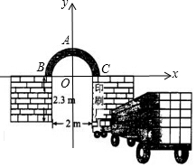分析 先建立平面直角坐标系,求出抛物线的解析式,因为车宽为1.6米,所以要计算离对称轴0.8时,高是多少,与车高2.6作对比,即把x=0.8代入抛物线的解析式中,得y=0.54米,总高为0.54+2.3=2.84米,大于车高2.6米,同时已知中还要满足卡车的上端与门的距离不得小于0.2m,还要计算2.84-2.8的差是否大于0.2米,最后才能得结论:可能通过.