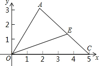 分析 设直线AE的解析式为y=kx+b,将A(2,3)、E(4,1)代入,利用待定系数法可求得直线AE的解析式为y=-x+5,将y=0代入y=-x+5得:x=5,然后根据△AOE的面积=△OAC的面积-△OEC的面积求解即可.