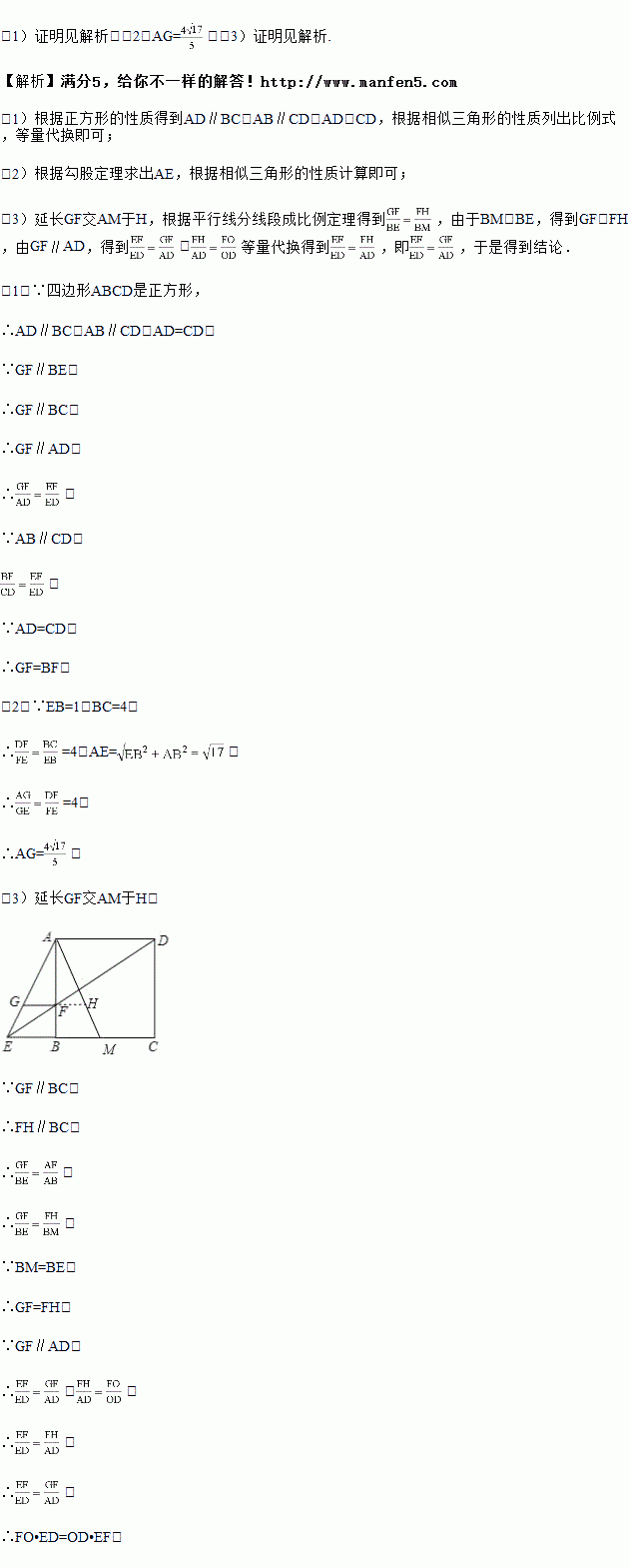 (3)在BC边上取点M,使得BM=BE,连接AM交DE于点O.求证:FO•ED=OD•EF.