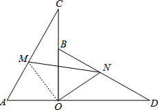 分析:连接OM,根据条件可以得出△AOC≌△BOD就可以得出AC=BD,由直角三角形的性质就可以得出∠A=∠AOM,∠NBO=∠NOB就可以得出∠NOB=∠MOA,就可以得出∠NOM=90°,MO=NO,由勾股定理就可以得出结论.