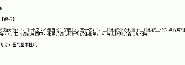 A、平分弦的直径垂直于弦
