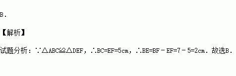 如图,△ABC≌△DEF,点B、E、C、F在同一直线上,BF=7cm,EC=3cm,则BE长为( )