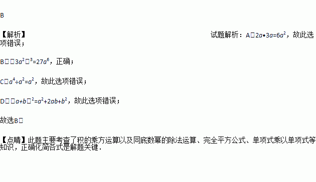 C. a4÷a2=2a D. (a+b)2=a2+ab+b2