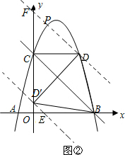 ②存在满足条件的点P.如图②,过D′作D′E∥BC交x轴于E,交抛物线于P,根据待定系数法可得直线D′E的解析式,联立方程组可得点P的坐标;过D作DF∥BC交y轴于F,交抛物线于P,根据待定系数法可得直线D′E的解析式,联立方程组可得点P的坐标.