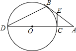 如图,AB是⊙O的切线,切点为B,直线AO交⊙O于点C、D,若∠A=30°.